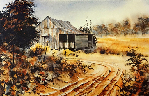 “A reproduction of the artist’s original watercolours depicting a home typical of the unique Australian Outback”