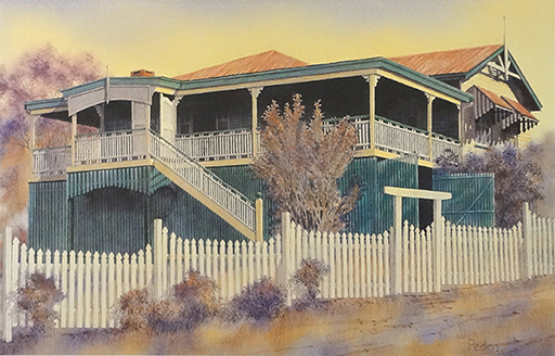 “A reproduction of the artist’s original watercolours depicting a home typical of Australia’s pioneering history.”